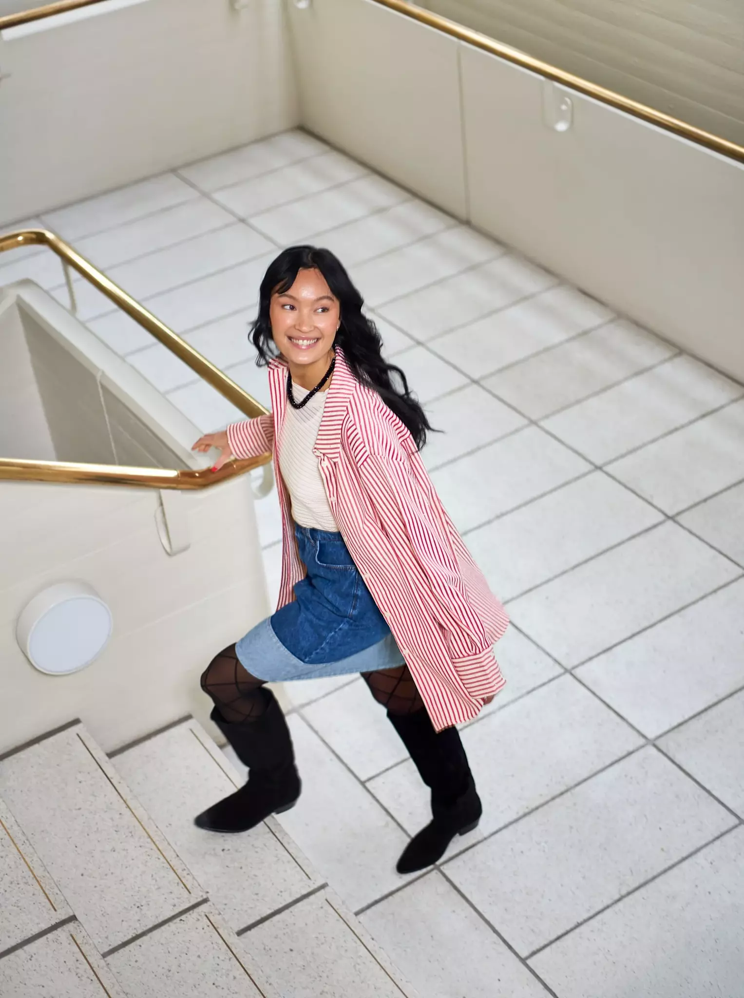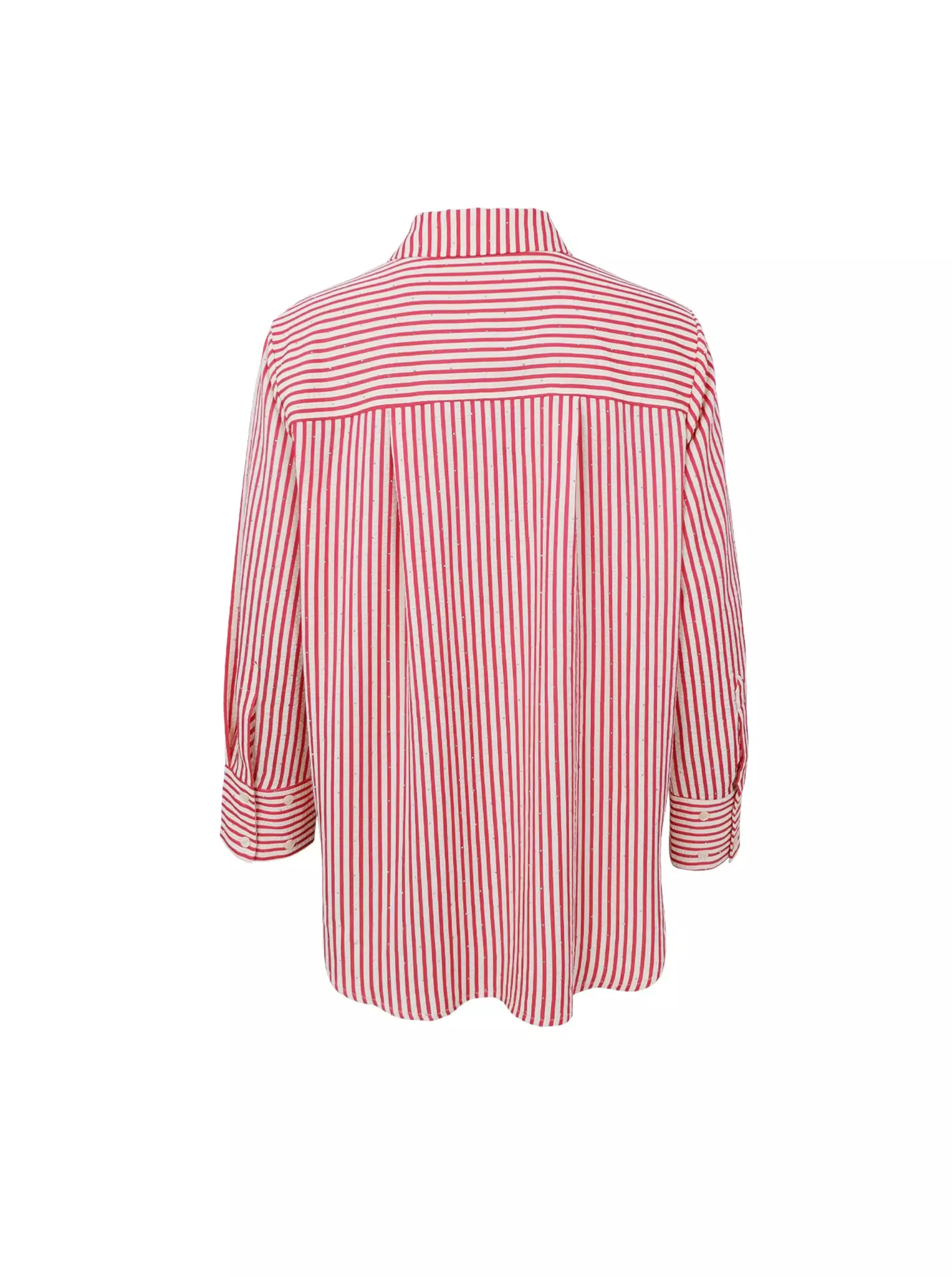En klassisk randig skjorta i en modern och avslappnad design. De röda och vita ränderna ger ett fräscht och stilrent uttryck som passar lika bra till vardag som till mer uppklädda tillfällen. Skjortan har en rak passform med krage och knäppning framtill, vilket ger en tidlös silhuett.