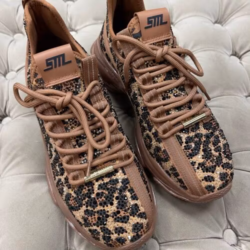 Leo mönstrade sneakers 1 479 kr Storlek 37 38 39 40 41 I lager. Lägg i korgen Lagersaldo: Artikelnummer: 76 Leverantör: Steve Madden Produktbeskrivning Ett par leopard mönstrade sneakers med strass/stenar. Se storlekstabell blandbilderna.