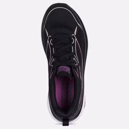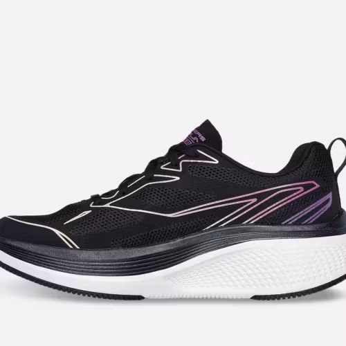 Ett par svarta sneakers från Skechers. Tillverkad med återvunna material, är denna veganska löparsko utrustad med en atletisk ovandel i mesh, en Air-Cooled Goga Mat komfort-innersula och en ULTRA LIGHT vadderad mellansula. Se storlekstabell bland bilderna.