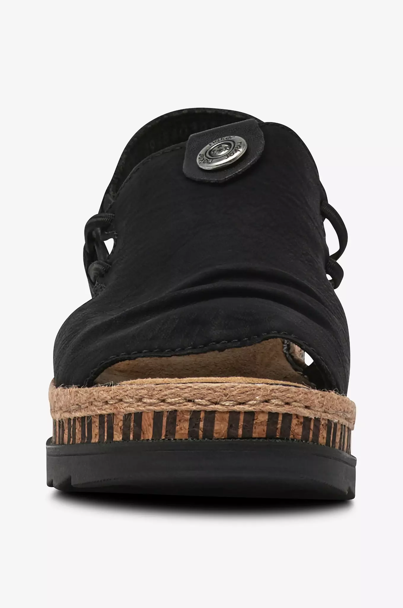 • Sandaler i skinnimitation med elastiska snören på sidorna • Låg kilklack • Mjukstoppad innersula • Repklädd sulkant • Yttersula i gummi • Klackhöjd: 4 cm