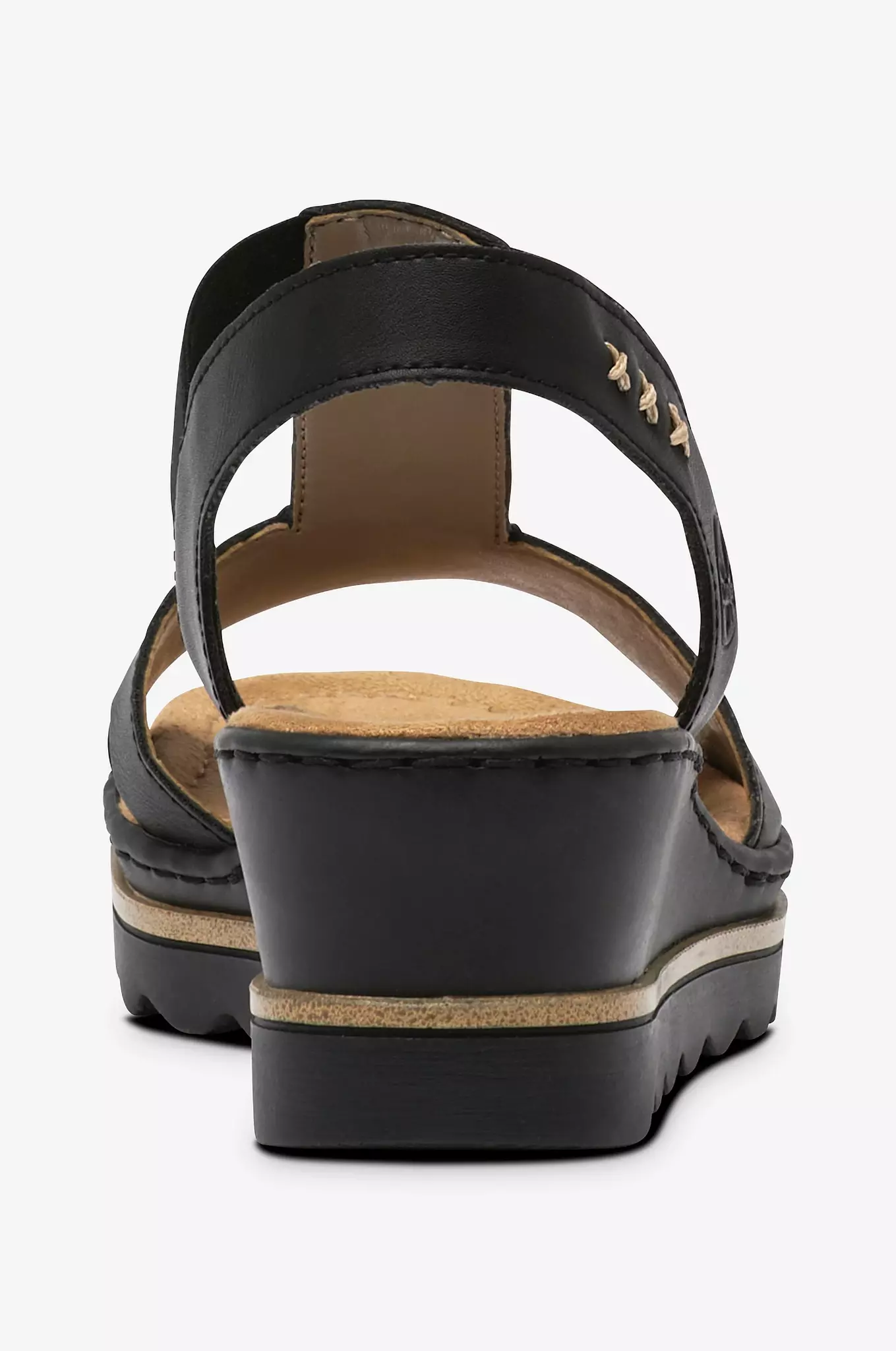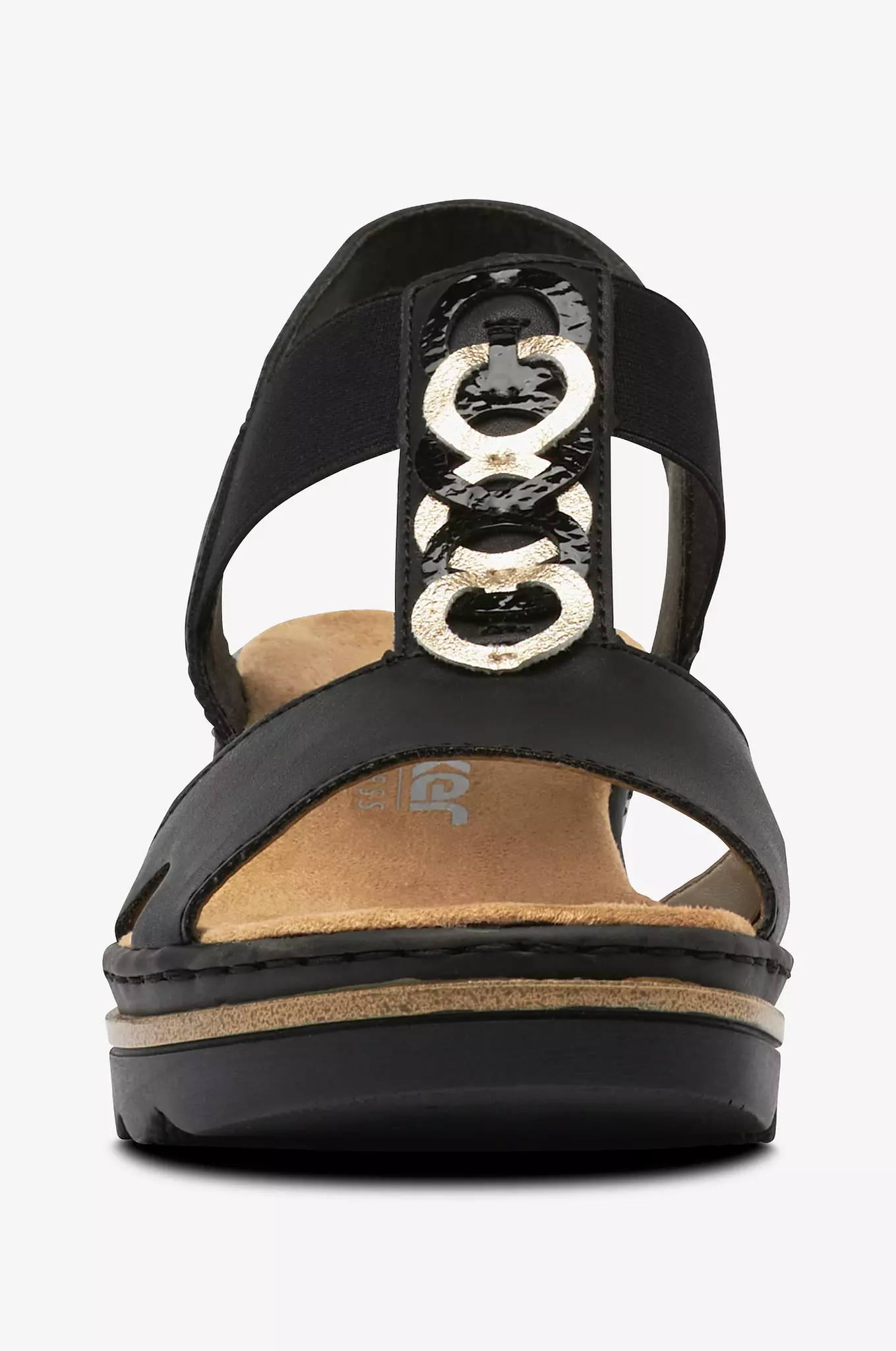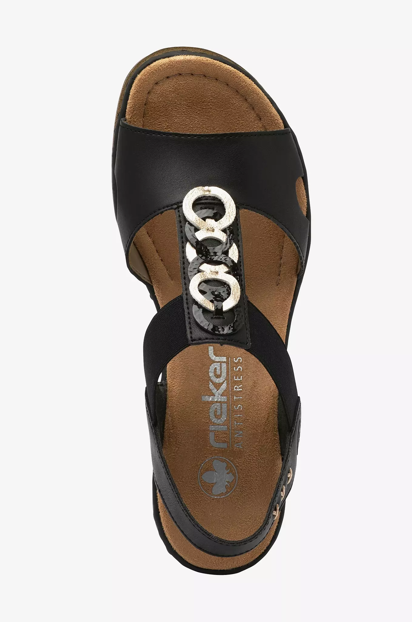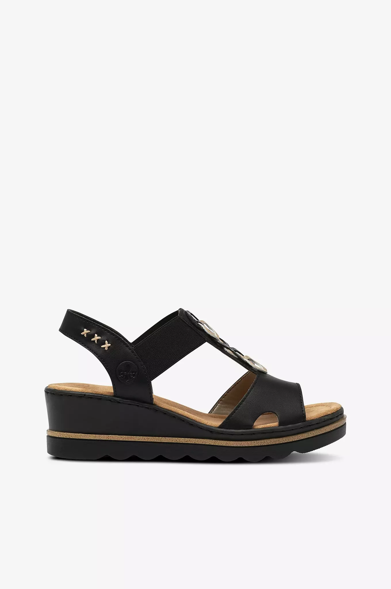 Svarta sandaletter 750 kr Storlek 36 37 38 39 40 41 42 I lager. Lägg i korgen Lagersaldo: Artikelnummer: 1791 Leverantör: Rieker Produktbeskrivning • Sandaler med kilklack• Elastisk rem över foten• Mjuk fotbädd i mikrofiber• Klackhöjd: 5,5 cmFoder: 100% PolyuretanMaterial: 100% KoläderOvandel: SkinnimitationYttersula: Polyuretan