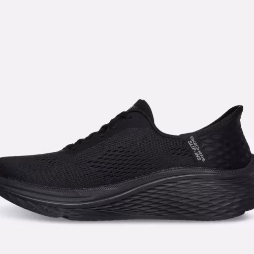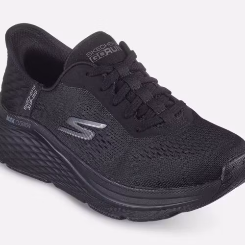 Ett par svarta slip-ins sneakers från Skechers. Max Cushioning-teknologi för att säkerställa ultimat komfort hela dagen. Denna modell erbjuder en handsfree-häldesign som gör det möjligt för dig att glida in i skon utan att använda händerna. Se storlekstabell bland bilderna.